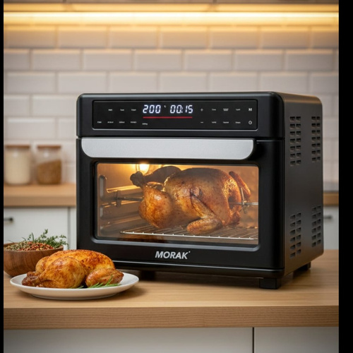 فر چندکاره برند موراک با طراحی مدرن و امکانات دیجیتال، مناسب برای پخت و گریل انواع غذاها (مانند مرغ بریان، کیک، پیتزا و ...). دارای قابلیت تنظیم دمای دقیق، تایمر دیجیتال، سیستم گردش هوای گرم و بدنه مقاوم. انتخاب عالی برای آشپزخانههای مدرن جهت آمادهسازی راحت و سریع غذاها.